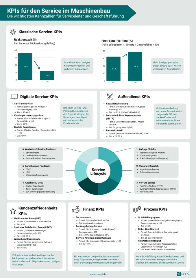 Was KPIs sind – und warum sie im Service zählen KPIs (Key Performance Indicators) sind messbare Kennzahlen, mit denen du die Leistung deines Servicebereichs objektiv bewertest. Gerade im Maschinenbau, wo…